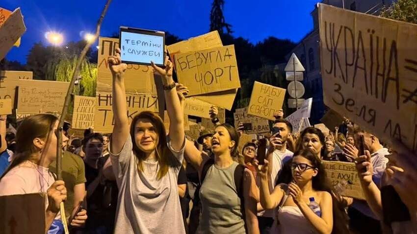 У Києві третій вечір поспіль проходять протести проти закону про НАБУ та САП. Серед учасників — народна депутатка Мар’яна Безугла, яка заявила про тиск на Україну з боку партнерів щодо зниження мобілізаційного віку.