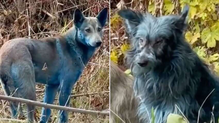 Волонтери з організації “Собаки Чорнобиля” розповіли, що кілька тижнів тому собаки мали звичайне забарвлення. Однак нещодавно їхнє хутро стало яскраво-синім.