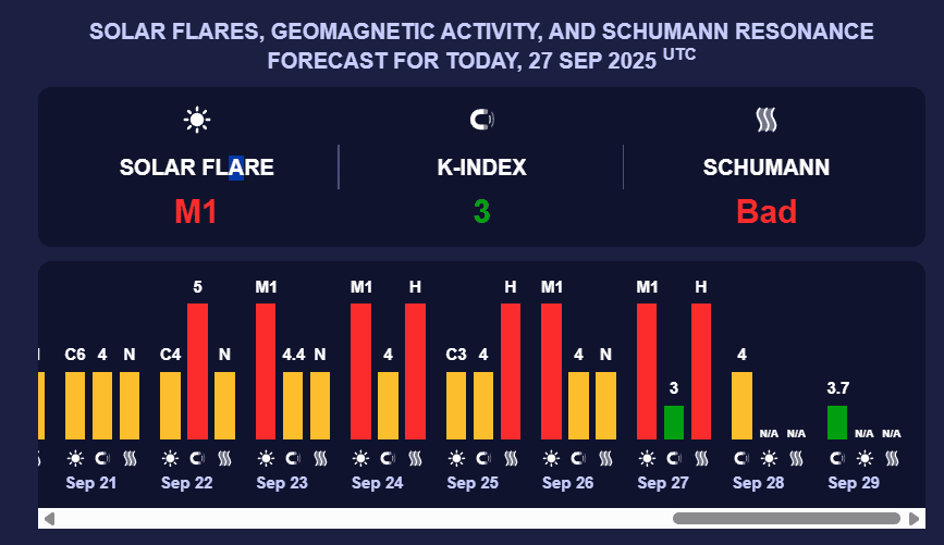 Сьогодні, 28 вересня, активність Сонця буде на середньому рівні. Магнітна буря відповідатиме К-індексу 4.