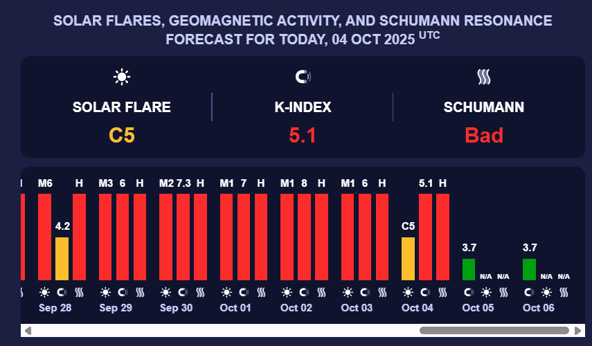 У понеділок, 6 жовтня, магнітна буря буде на низькому рівні. Це – зелений рівень – К-індекс 3.7.