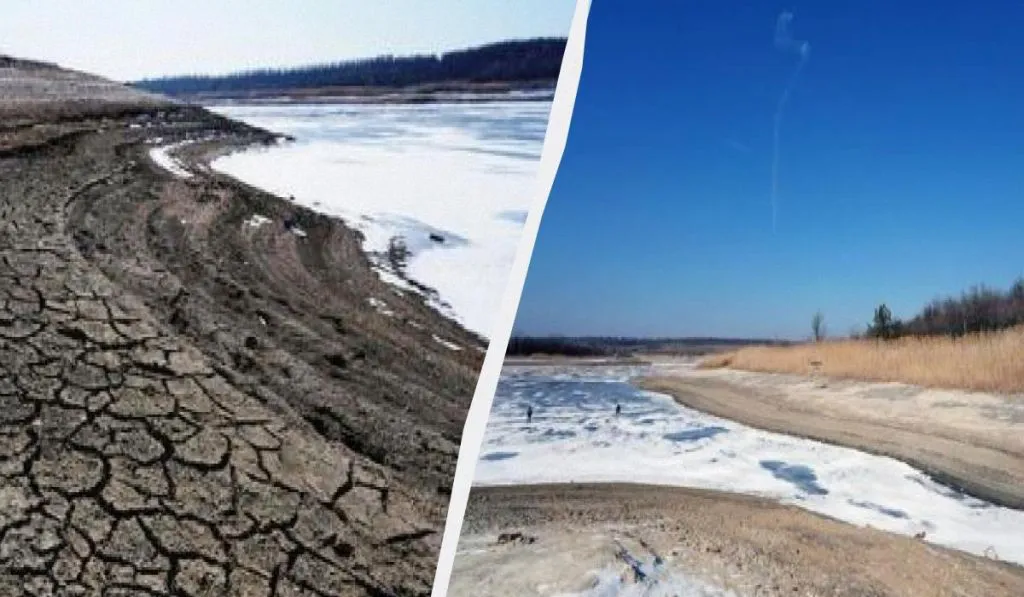 Він пояснює, що складно оцінити по сьогоднішнім фото стан водосховища та ступінь обміління. Тому фахівці центру зробили візуальне порівняння – весни 2021 року та зима 2025 року, щоб показати масштаби катастрофи.