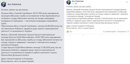 Водночас мер Луцька Ігор Поліщук повідомив, що 26 серпня під час виконання бойового завдання загинув льотчик Олексій Месь. Він проходив навчання в США на F-16, про що повідомляла раніше пресслужба 144-го винищувального крила Повітряних сил Нацгвардії США. Однак згодом мер Луцька відредагував свій пост в мережі та прибрав звідти інформацію про загибель льотчика. Ймовірно, саме він керував F-16 і зазнав аварії. Але ця інформація не підтверджена офіційними особами.