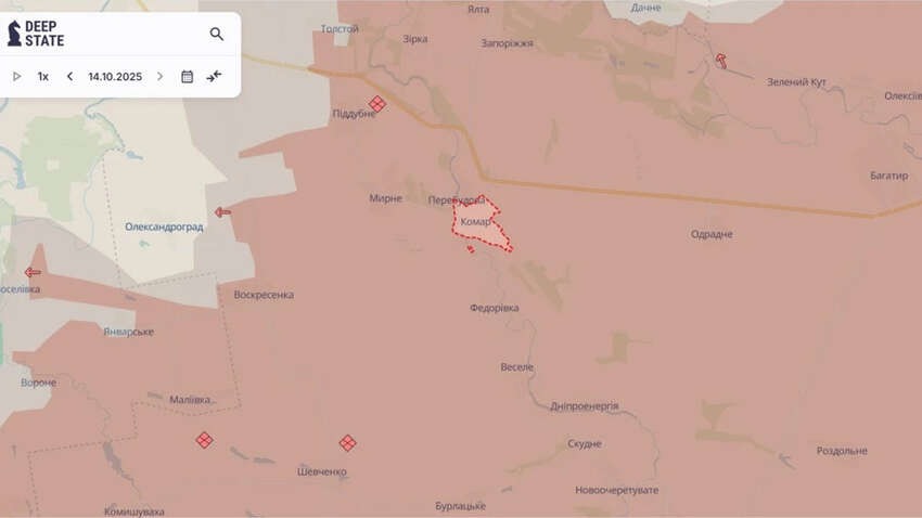 У ніч на 15 жовтня аналітичний проєкт DeepState повідомив про окупацію росіянами трьох населених пунктів на Донеччині, йдеться про Перебудову, Комар та Мирне, що знаходяться на Новопавлівському напрямку.