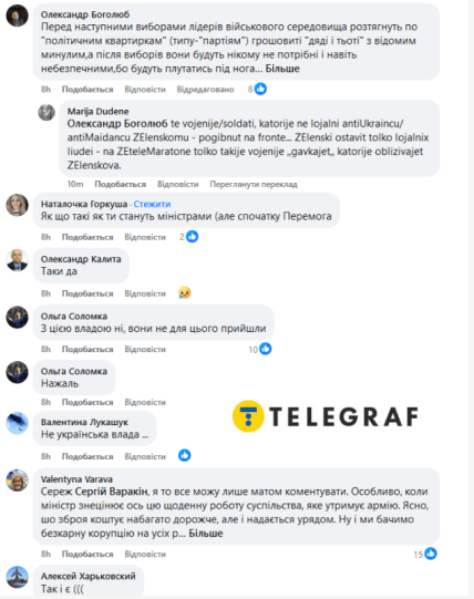 На ситуацію одним із перших відреагував український журналіст та позаштатний радник міністра оборони Юрій Бутусов. Зокрема, він зазначив, що це “крик душі комбата”. Зібрали також інші коментарі під дописом Сергія Варакіна: