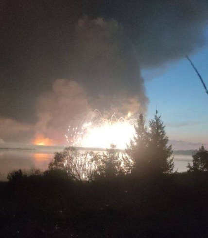 У ніч проти 18 вересня безпілотники атакували російське місто Торопець Тверської області. Під удар потрапили великі склади боєприпасів – виникла сильна пожежа та детонація, яка триває досі.