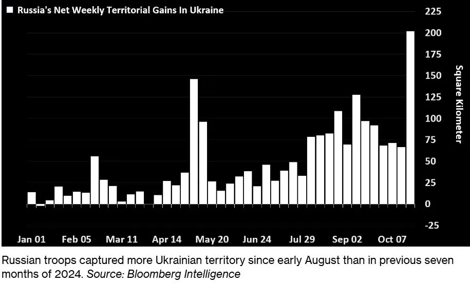 З початку серпня росіяни захопили більше території, ніж за попередні сім місяців 2024 року / Bloomberg