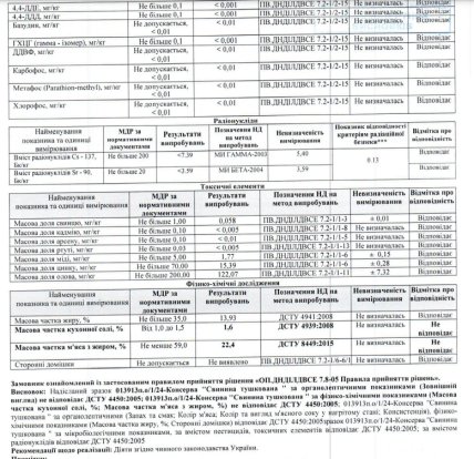 Також за результатами незалежної експертизи з’ясувалося, що тушкована свинина виробництва ТОВ “Ментерика” не відповідає стандартам ДСТУ за органолептичними та фізико-хімічними показниками. Це означає, що його не можна ні споживати, ні продавати. Постачання цієї продукції здійснює компанія “Трейд граніт інвест” — її пов’язують з бізнесменами Адамовським і Якубовським.