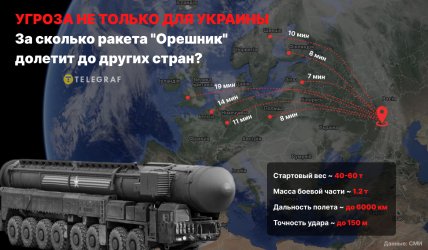 За скільки хвилин російська ракета “Орєшнік” може долетіти до столиць Європи