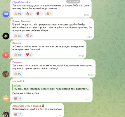 “Я ходжу у Варшаві до перукарні, і мене стриже український перукар молодого віку. Я питаю: а що ти тут робиш? Хіба ти не маєш захищати свою країну?” — розповів польський міністр.