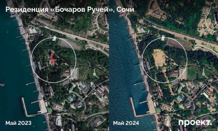 У Сочі Путін має дві резиденції, одну з яких з лютого почали зносити. Наразі на місці “Бочарого струмка” котлован, довкола якого працює будівельна техніка. Офіційно це не коментували.