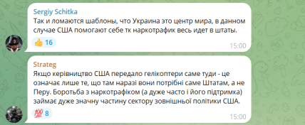 Люди звинуватили США в тому, що вони могли б передати ці гелікоптери на потреби ЗСУ, а не “боротися з наркотрафіком в Перу”: