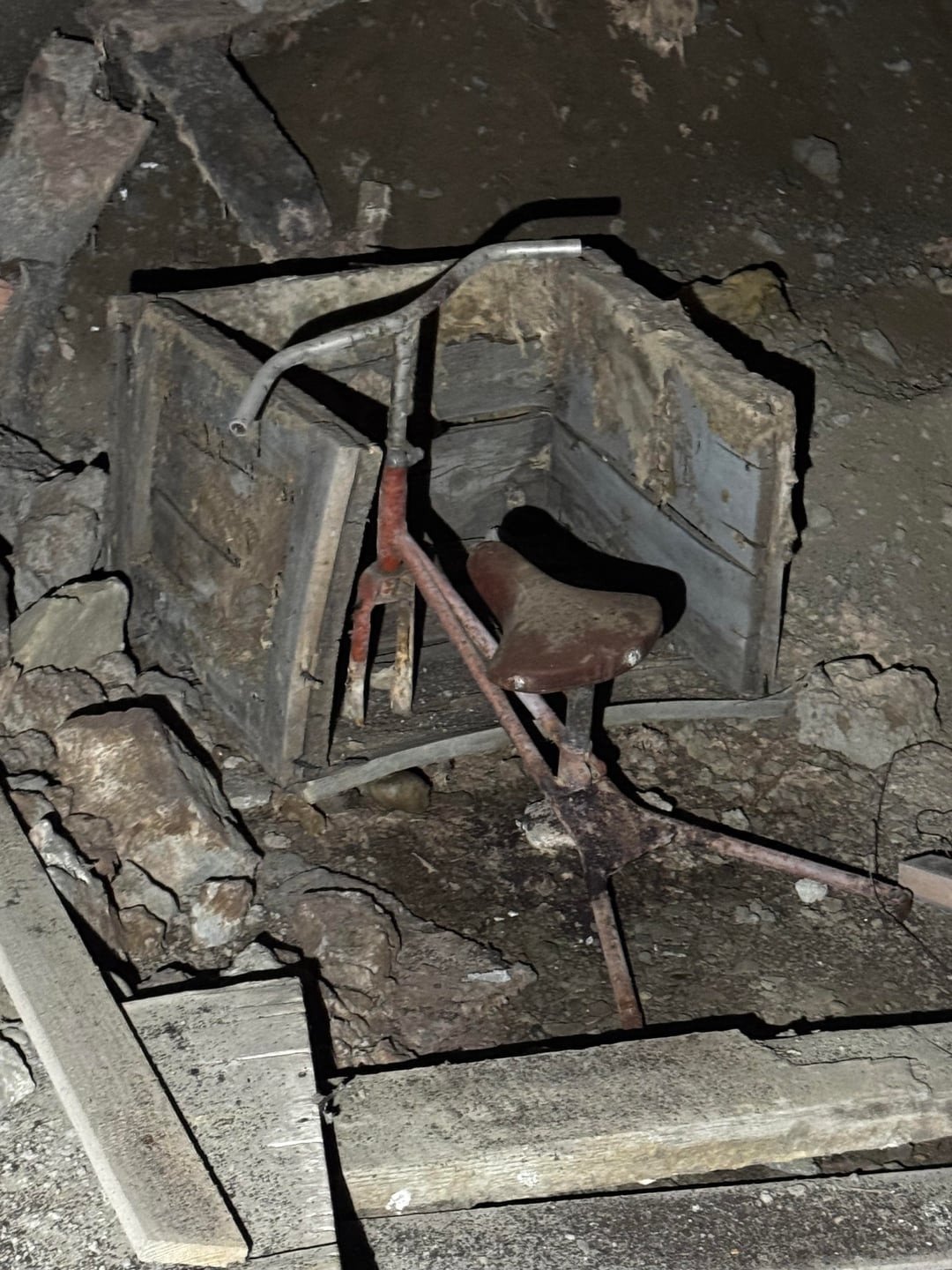 Усередині збереглися кілька предметів минулих часів — раковина, старе сидіння та навіть велосипед. Зараз власник прибирає підземелля і чекає на дослідників із військового музею.