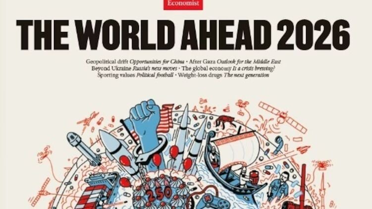 Британський журнал The Economist опублікував традиційну обкладинку-ребус до щорічної програми з прогнозами та аналітикою “Світ напередодні 2026 року” (The World Ahead 2026).