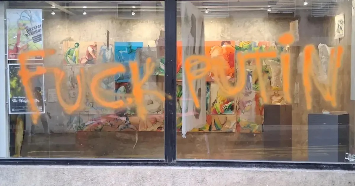 Як повідомили у виданні, вранці на фасаді та вікнах галереї, а також на сусідніх будівлях виявили численні написи, зроблені помаранчевою фарбою. Вандали залишили радикальні гасла, спрямовані проти російського диктатора. Серед них — «Путін — вбивця» та «Смерть Путіну».