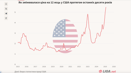 За даними LIGA.net, у лютому 2025 року середня вартість дюжини яєць у США зросла до $5,49, що на 80% більше, ніж у 2024 році. У деяких штатах ціни вже перевищили $10 за упаковку.