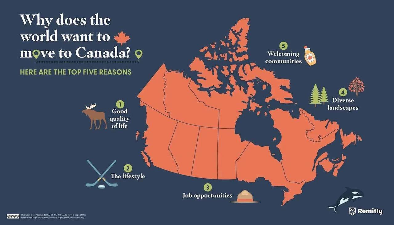 Згідно з новим опитуванням Remitly, Канада очолює рейтинг найпривабливіших країн для переїзду. Опитавши понад 4800 людей у 26 країнах, дослідження висвітлює не лише найбажаніші місця для подорожей, але й мотивацію, що стоїть за мріями людей розпочати нове життя у країні «кленового листа».
