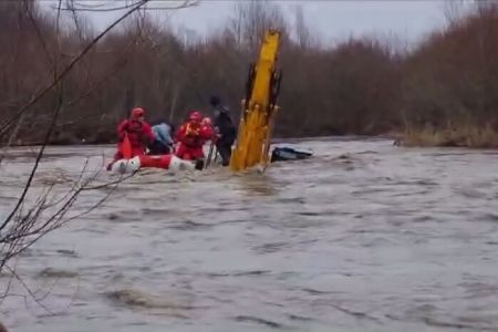 У кабіні перебувало двоє людей, які через сильну течію самостійно вибратися з трактора не змогли. Працівники ДСНС за допомогою катамарана…